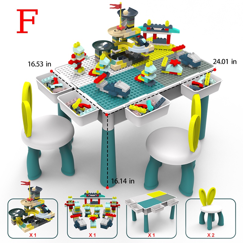 • Material: Plastic, ABS • F with 326 Blocks: 2 * Rabbit Chair +Big Table +163pcs Animals blocks +163pcs Slide blocks